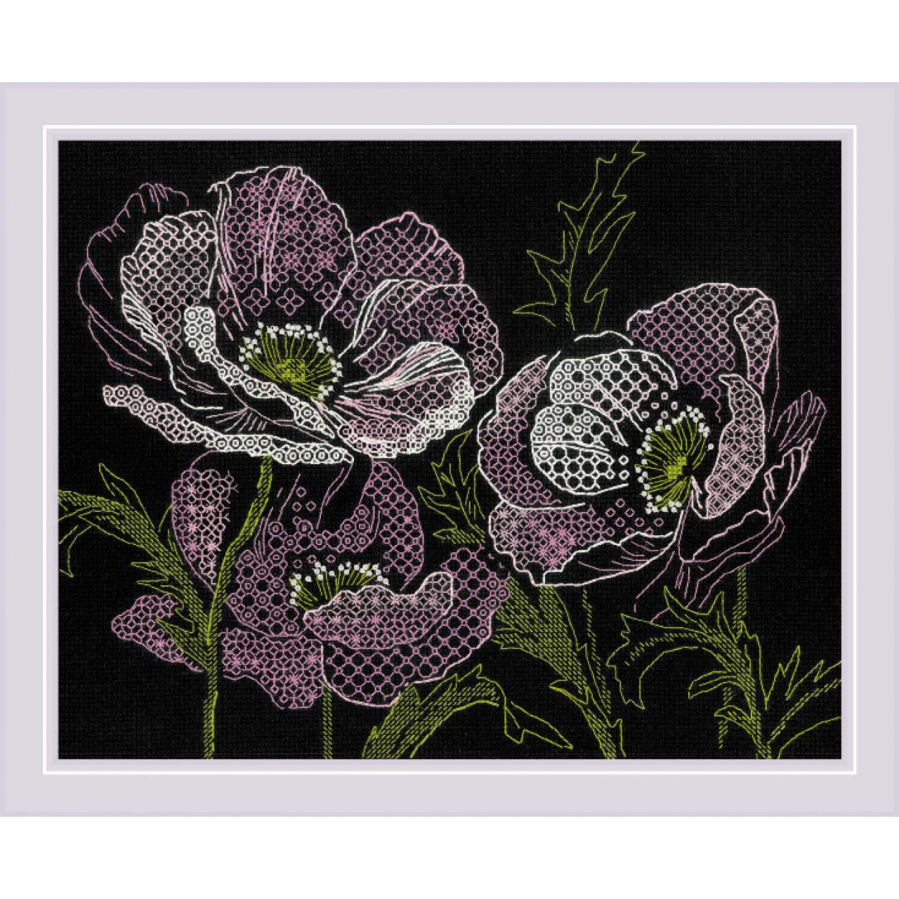 Набор для вышивания нитками РИОЛИС "Кружевные маки", СС-1991, Риолис, Картины