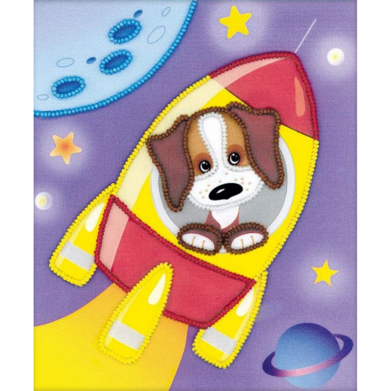 Состав: ткань с нанесенным рисунком, нитки мулине С-Пб (1 цвет), бисер (5 цветов) игла, цветная схема, инструкция на русском языке.